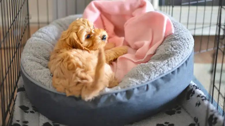 If your puppy hasn't yet started forming a positive bond with its crate, there are several things you can do to help foster those associations. They include adding blankets and dog beds to make the crate more physically comfortable, a favorite toy, and something that smells like you (as long as your dog won't chew it up). You can also adjust the location of the crate if it's near anything that's too loud, hot, cold, or unpleasantly smelly to your dog's nose.