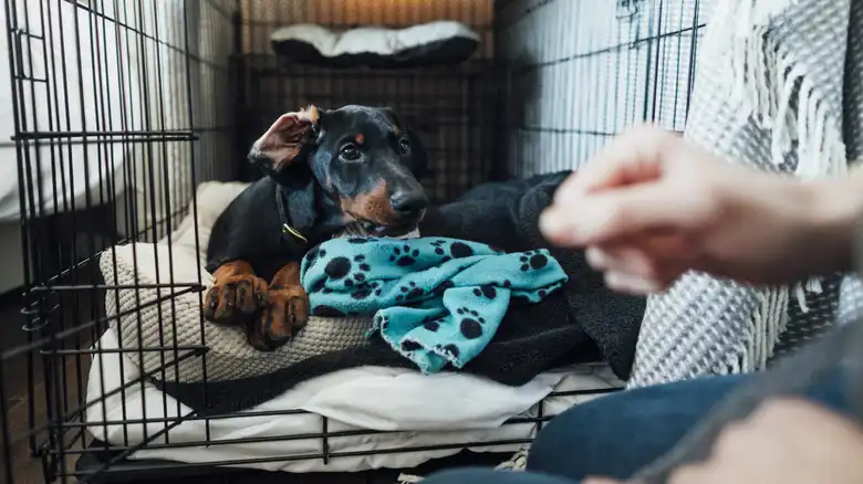 ByLisa MaloneyFeb. 15, 2025 9:05 am ESTIf you're worried about your puppy getting overstimulated when you have visitors, chewing things up when not directly supervised, soiling the house while you're gone, or being able to travel comfortably, crate training can be a powerful solution. Sometimes dog owners project their own feelings about being confined in a small space onto their pets, thinking that because they wouldn't want to spend time in a crate, their canine won't want to either. However, dogs have a denning instinct that humans don't, which means they appreciate having a small, cozy space to call their own.
