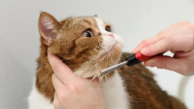 One of the safest ways to manage a lice infestation is with a comb. Twice a day, use a fine-toothed flea comb like Kopal Stainless Steel Pet Lice Comb and run the tool from the top-to-bottom of your cat, targeting hard-to-reach areas like the head, neck, and tail. It may help to wash them beforehand to wash your cat with warm water and dish soap to wet the fur. Repeat this process for several weeks until another lice life cycle has completed and you can verify all new nymphs are gone. Keep in mind that kittens under 6 weeks of age are vulnerable to developing hypothermia, so be sure to towel dry them completely after every bath.